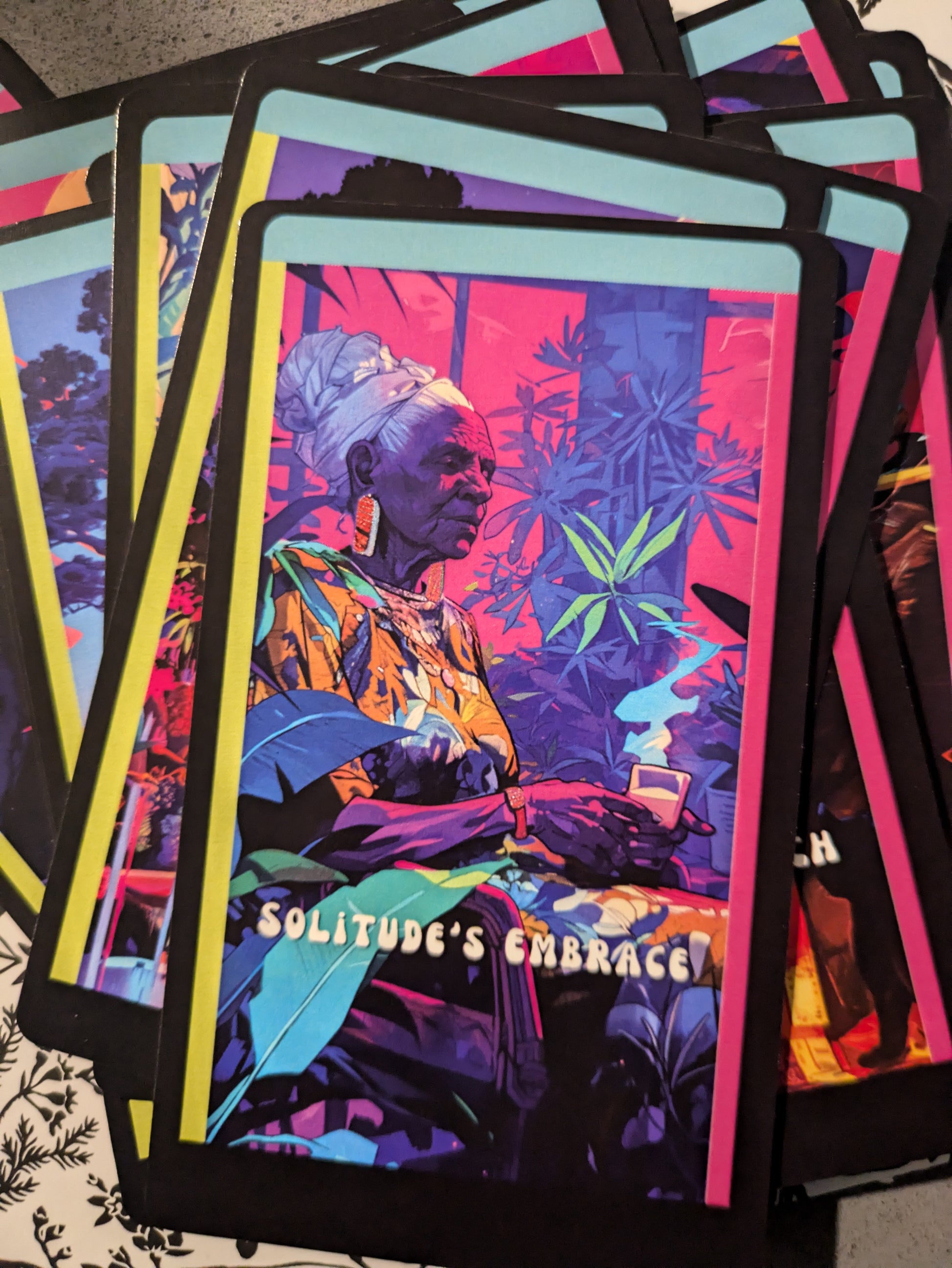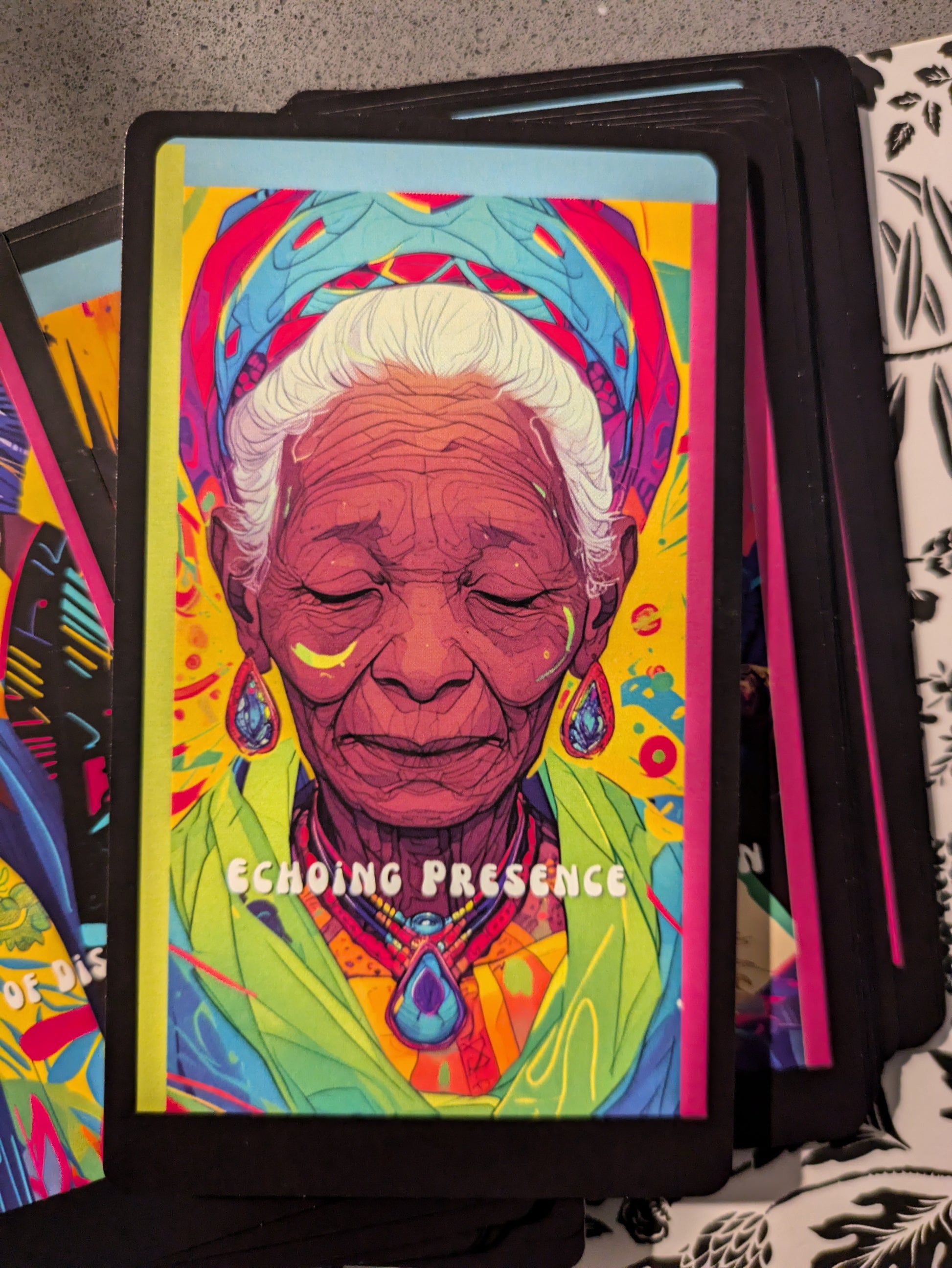 A modern oracle rooted in ancient echoes. This 48-card deck channels ancestral wisdom, African folklore, and Afrocentricvart into powerful, poetic guidance. Created by Tatii Creer, this deck is a spiritual bridge—connecting the past, present, and future through intention and intuition.
